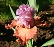 лілово бузкові фоли з рожевими відтінками біля основи, глянсові кавово-рожеві фоли з більш світлою плямою під малиново-червоною борідкою, широка супергофрована квітка