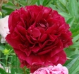 Glasscock/Falk, 1961 (1964 - рік реєстрації), СШАСорт - міжвидовий гібрид.Квітка напівмахрова та махрова трояндоподібна, при дозріванні стає кулеподібною, темно-червона з винним відтінком. Самі пелюстки широкі, щільні, матові з оксамитовою фактурою. Часто з помітними схованими тичинками серед пелюсток, які зникають по мірі дозрівання квітки. В центрі кремові маточки з білими приймочками в оточенні жовтих тичинок. В бутонах цей сорт схожий на троянду. На квітконосі можуть утворюватися бічні бутони (до + 1 шт.).Діаметр квітки 18 см, висота куща 100 см. Період цвітіння середній. На даний час цей гібрид вважається одним з найбільш пізньоквітучих з справжнім червоним кольором.Опора не потрібна. Стебла міцні, зелені, вкриті листям доверху. Листя середньо-зелене, широке. Аромат відсутній.